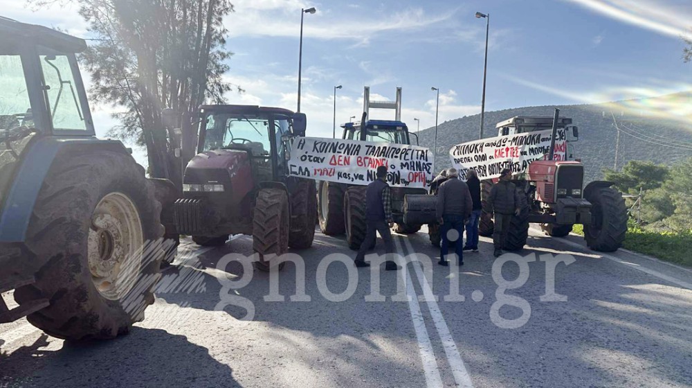 Κλειστή είναι η υψηλή γέφυρα Χαλκίδας από μπλόκα αγροτών.