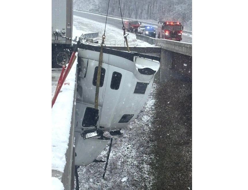 Το ατύχημα συνέβη σε αυτοκινητόδρομο της Δυτικής Βιρτζίνιας σε σημείο που το οδόστρωμα είχε μετατραπεί σε πάγο. Αυτός ήταν και ο λόγος που ο οδηγός της νταλίκας έχασε τον έλεγχο του οχήματος, παρεξέκλινε της πορείας του, χτύπησε στα προστατευτικά στηθαία της γέφυρας, τα έσπασε και ξεκίνησε τη βουτιά στο κενό.