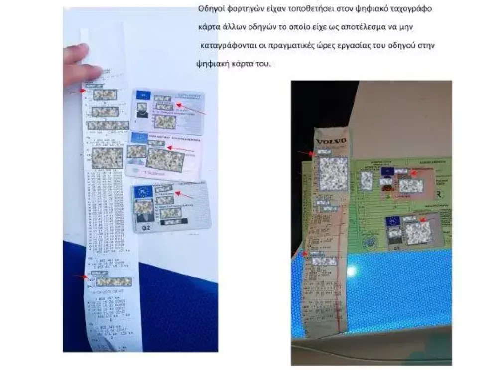 - 2 για οδήγηση από οδηγούς οι οποίοι δεν χρησιμοποιούσαν κάρτα ψηφιακού ταχογράφου,