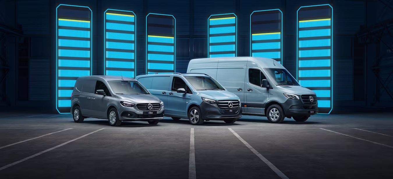 Και στις τρεις τυπικές κατηγορίες –κόμπακτ, μεσαία, μεγάλα vans- τα eCitan, eVito και eSprinter της Mercedes-Benz αποτελούν αξιόπιστες και αποδοτικές λύσεις για τη μεταφορά φορτίων και επιβατών. Έχουν ως κοινή παράμετρο τη μεγάλη αυτονομία, την άνεση και φυσικά τη βιώσιμη λειτουργία. Επιπρόσθετα, όλα τα ηλεκτρικά vans της Μercedes-Benz είναι πρόσφατα αναβαθμισμένα, και φέρουν σειρά βελτιώσεων που τα τοποθετούν στην κορυφή, ειδικά σε αποδοτικότητα, αυτονομία και στοιχεία εκμετάλλευσης.