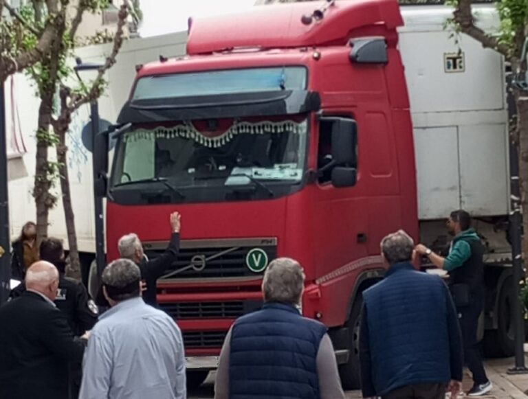 Το βαρύ όχημα με ρουμάνικες πινακίδες βρέθηκε στην κεντρική πλατεία μέσω της Ι. Σταϊκου κατά λάθος, ίσως μετά από υπόδειξη του GPS.