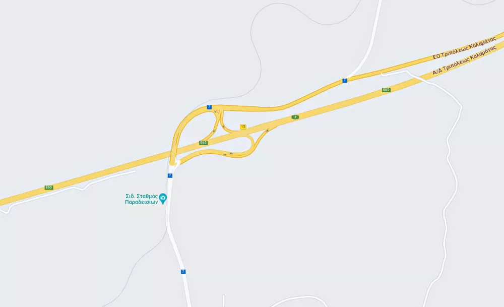 Από τον Φεβρουάριο του 2019 ο «Μορέας» που διαχειρίζεται τον αυτοκινητόδρομο Α7 (Κόρινθος- Καλαμάτα) έχει προειδοποιήσει για την επικινδυνότητα της γέφυρας της σιδηροδρομικής γραμμής στον ανισόπεδο κόμβο Παραδεισίων και αυτό γιατί η γραμμή δεν χρησιμοποιείται πλέον, αλλά η γέφυρα «η οποία δεν χρησιμοποιείται πλέον, παρουσιάζει προβλήματα αναφορικά με τη δομική ακεραιότητα συγκεκριμένων στοιχείων της, τα οποία θέτουν σε κίνδυνο την ασφάλεια της κυκλοφορίας στον αυτοκινητόδρομο».
